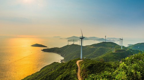 衢山岛还有一个浪漫的名字叫做“风车王国”,原是因为整个岛上有着48台风机,远远望去,海岛的青山缓坡上像是立满了风车。