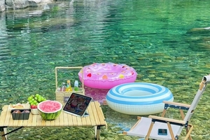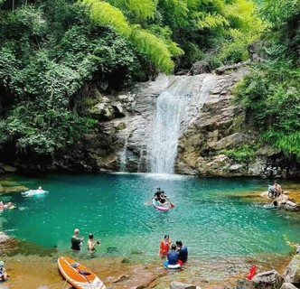 07:30 吃早饭,早饭后上车前往淡竹,淡竹的水无比干净,是溯溪路线里最好的水质之一,大家换游泳衣下水玩咯;