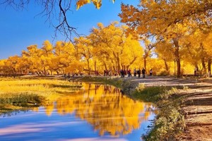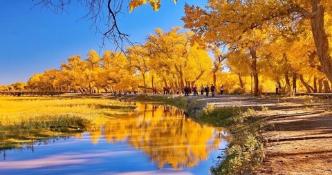 早起用过早餐驱车前往素有“醉美胡杨林之称”的【弱水金沙湾胡杨林景区】(约450km,约7小时,游玩1.5小时),有着中国最美的秋色之称,景区位于弱水上游的主河道两侧,紧密的将沙漠、神水、野胡杨三者天然美景完美结合。既被赋予“弱水三千,只取一瓢”的爱情主题,又被赐予“胡杨百媚生,陷于弱水情”的千古柔情。