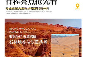 早餐后行车约2h抵达张掖,走进平山湖大峡谷,就被这里的气势所震撼。大自然万万年悄无声息的孕育,河西的风和塞上的雨,把这里的岩石镌刻雕琢,塑造成一个个令人惊叹的三维奇观。置身于纵横交错的沟壑,成林的群峰,犹如世界建筑大师巧夺天工之作,让人目不暇接!