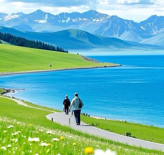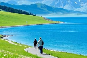 早餐后乘车前往赛里木湖游玩,在游览神秘美丽的【赛里木湖】景区(成人已含门票;观光车75/人,敬请自理)。