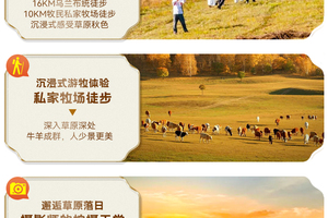 早餐后我们前往【私家牧场】(徒步全程11km)。深入草原秘境,白桦疏林、成群牛羊交相辉映,一路风光无限。深入草原,白疏林、偶遇成群牛羊交相辉映,一路风光无限。在风景美的地方,我们可以拍照,游玩、尽情的奔跑。漫步在私家牧场,望云卷云舒,一马平川,沃野千里,在广阔的天地间追寻自由的脚步~
