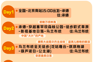 关于集合:集合地点为北京南站内,具体地点领队将提前以短讯和电话的形式告知大家,由于集合后前往承德住宿,请大家自由解决中餐,或者自备零食.