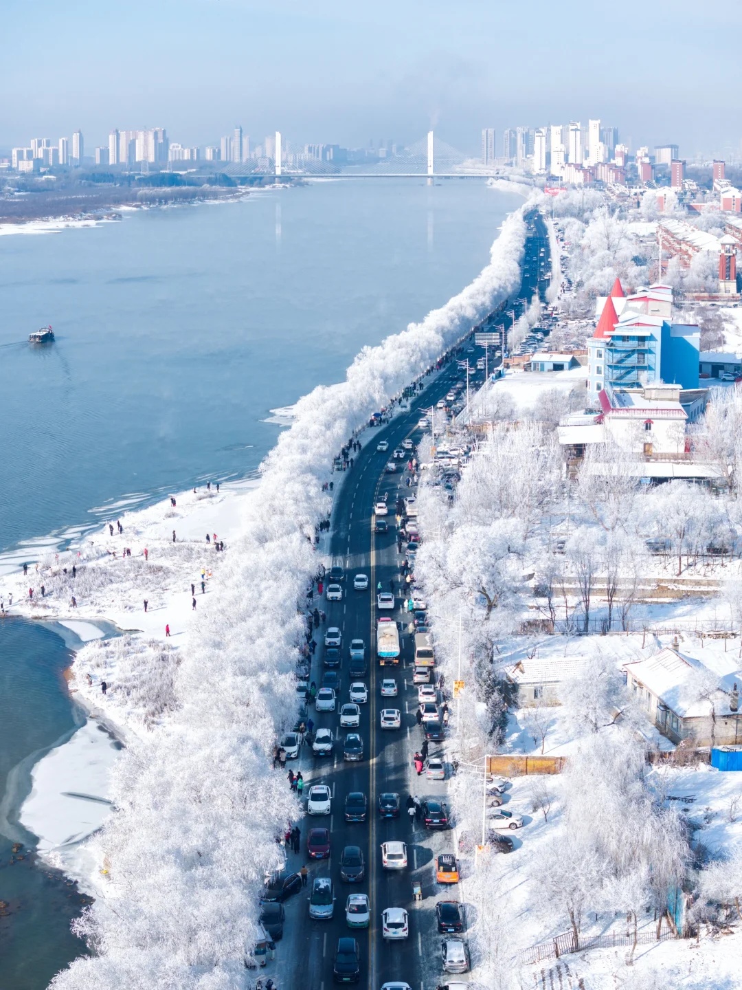 上午 (约07:30-10:00):早餐后,前往小雾凇岛。观赏雾凇需要天时地利,建议提前关注天气,在晴天、无风的早晨前往,景色最佳。沿江的垂柳挂满洁白晶莹的霜花,景色蔚为壮观。