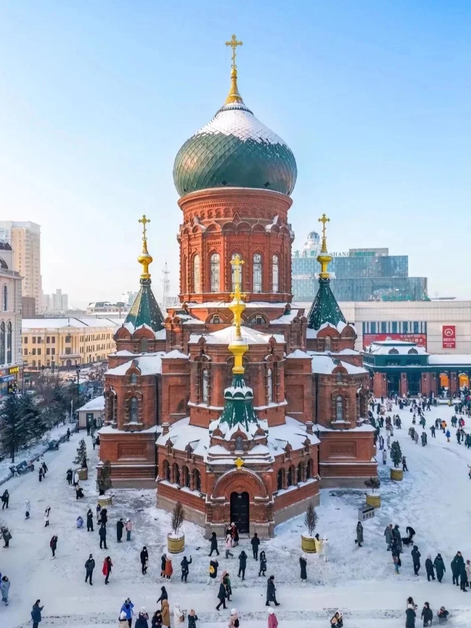 上午:游览哈尔滨的城市名片——中央大街,尝尝地道的马迭尔冰棍。参观拜占庭风格的圣索菲亚大教堂。