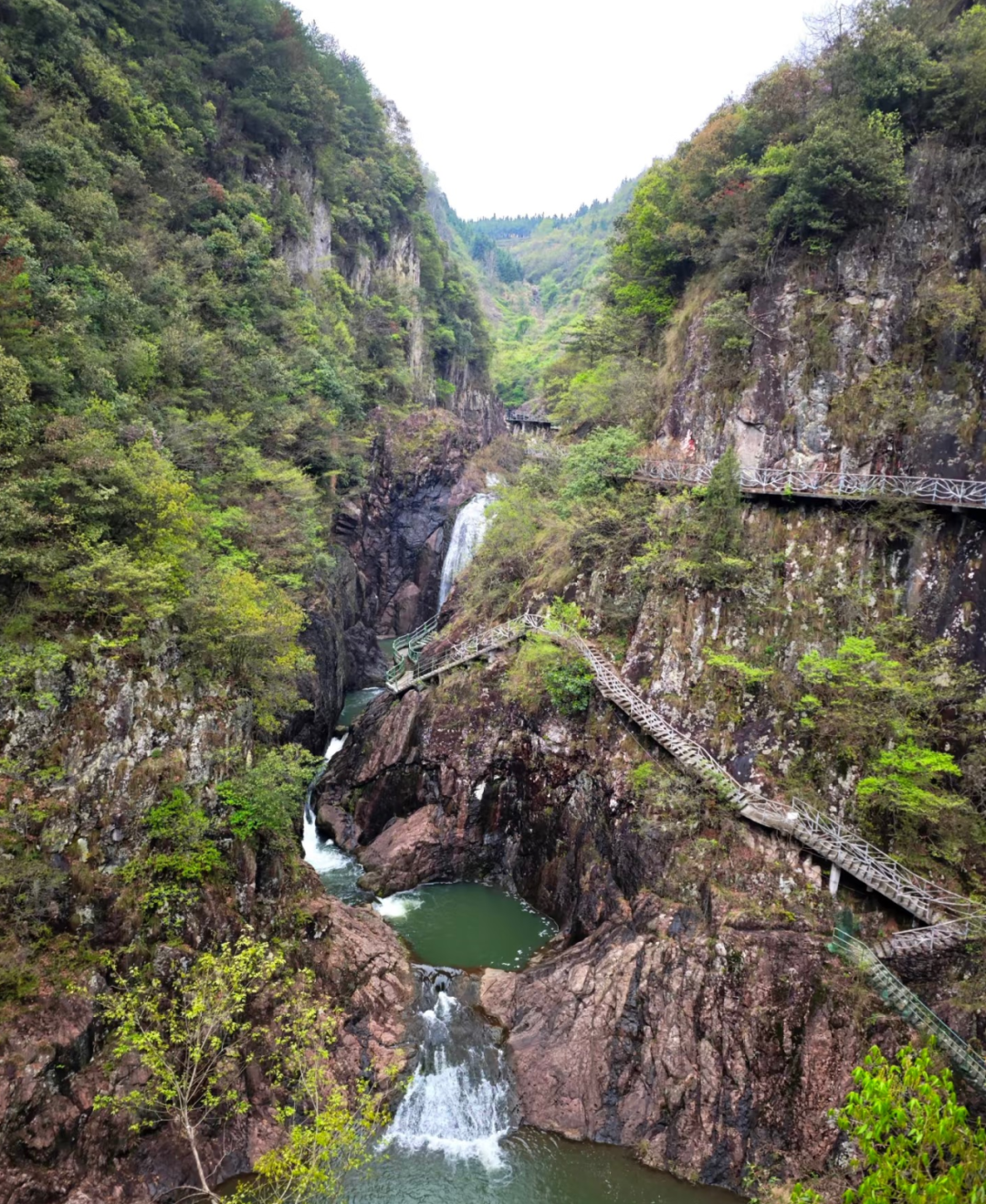 14:20左右,我们来到【十八涡景区】【含】,有号称“浙中大峡谷”,景区内汇集了潭、瀑、湖、石、山、林等丰富的自然资源,而且兼具了古宅、城里山大兴国遗址等。