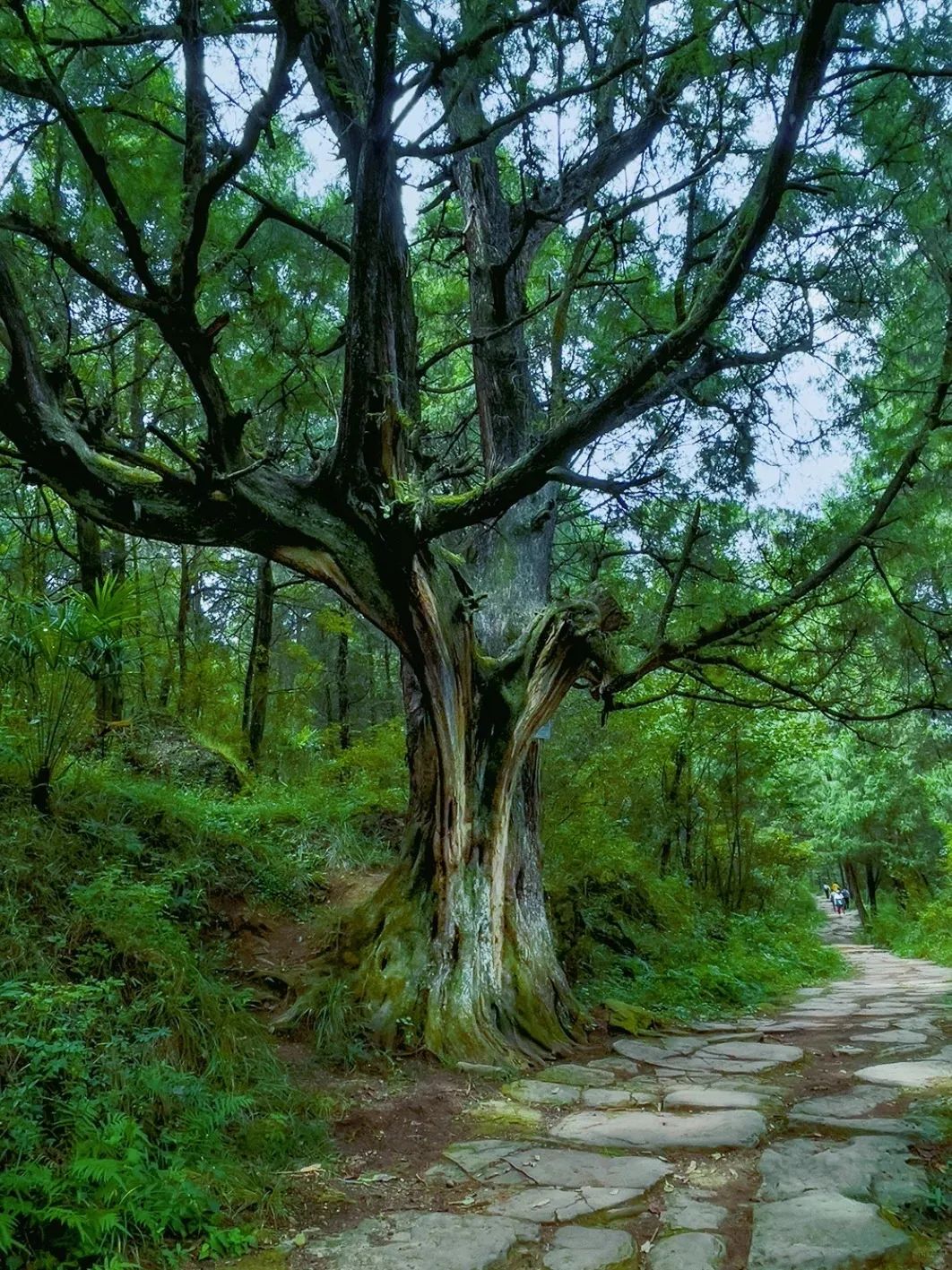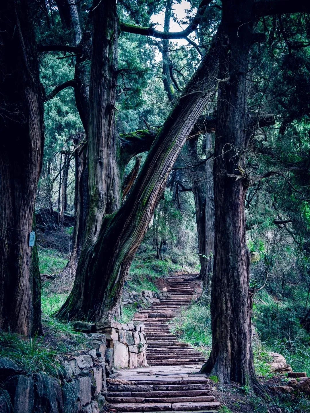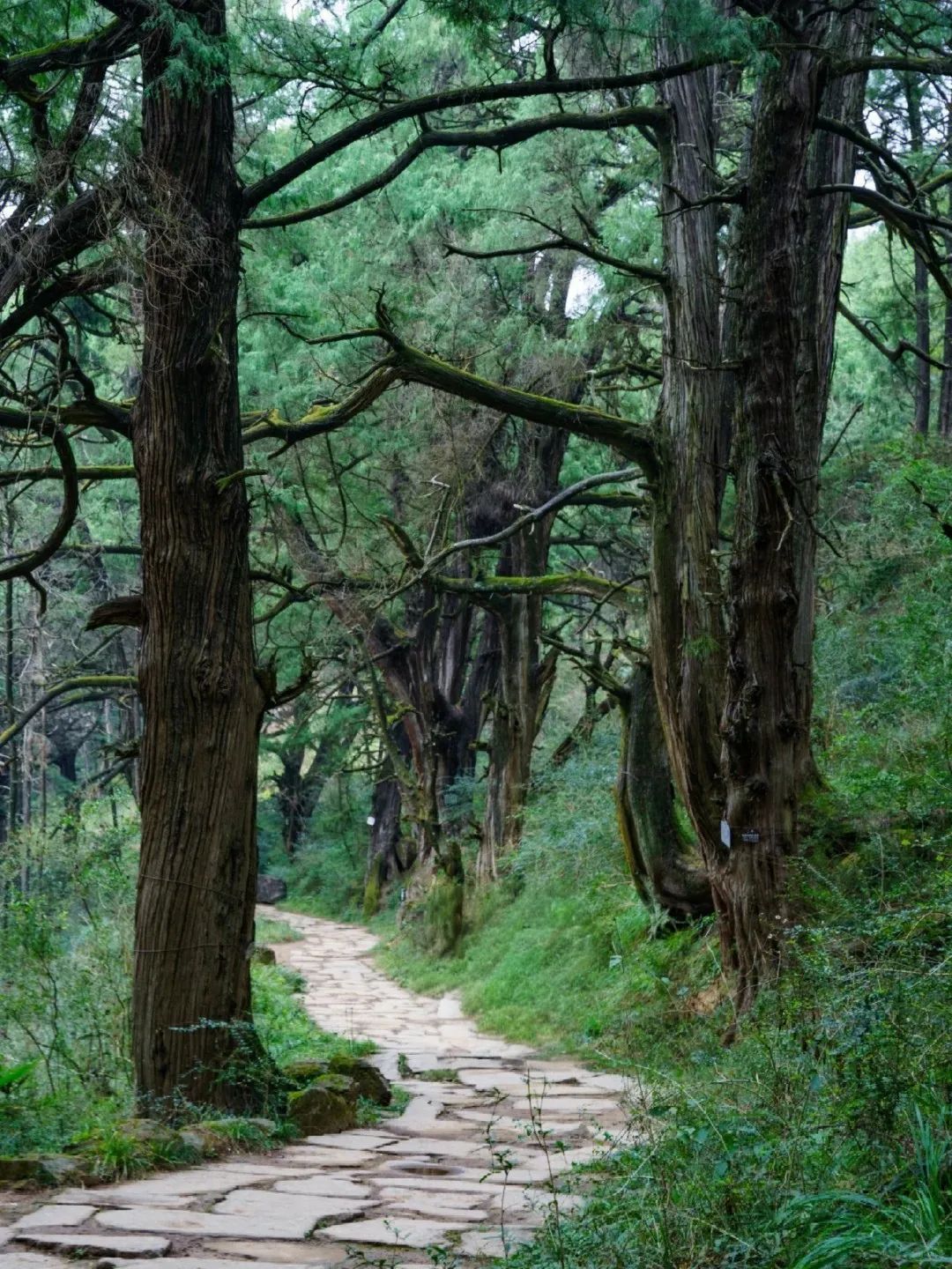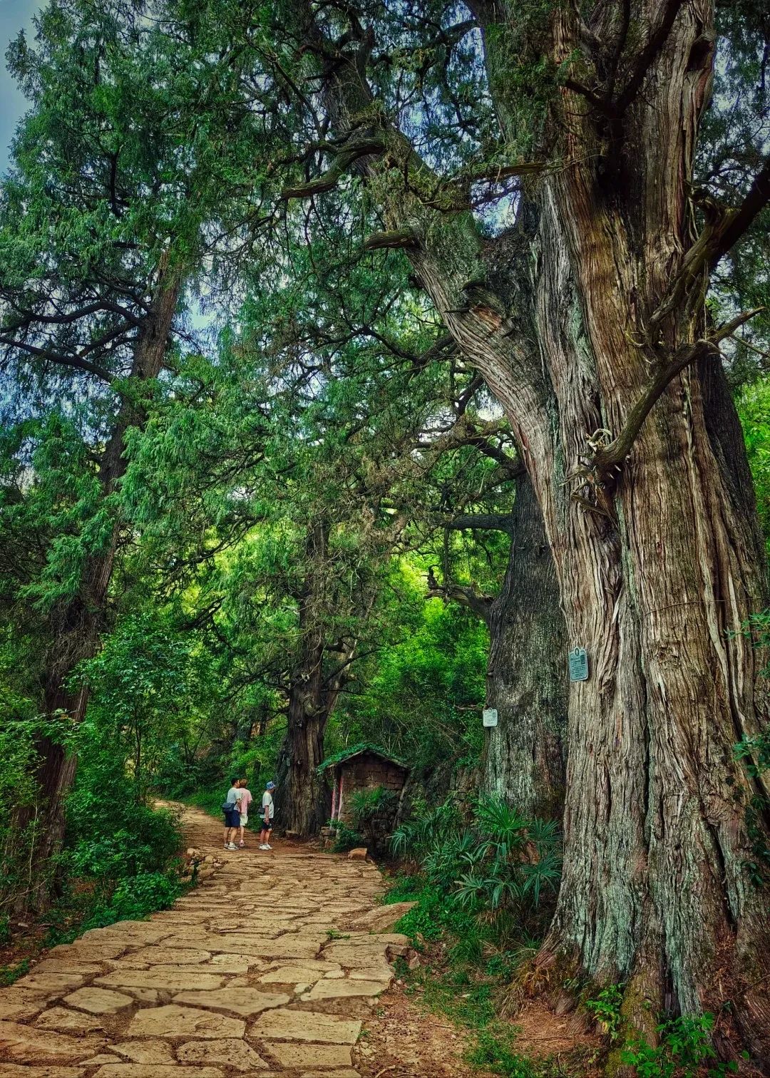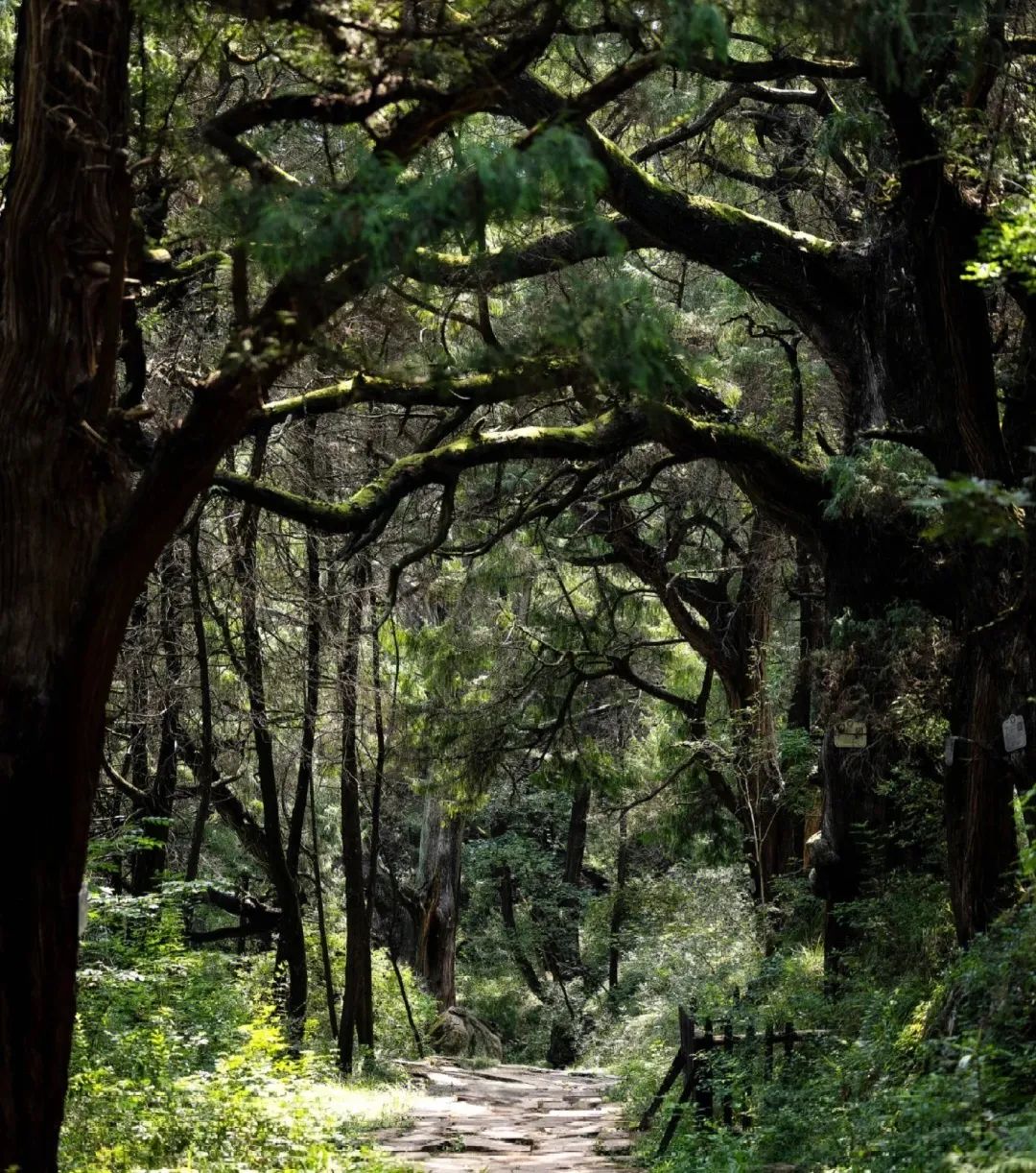 汉阳古蜀道,现存古柏8000余株,树龄多在千年以上,最古者可追溯至秦汉。这些“皇柏”枝干虬结如青铜雕塑,树皮皲裂似甲骨文刻痕,冠盖相连形成长达10公里的“绿色隧道”。阳光穿透枝叶,在青石板上洒下碎金般的光斑,风过时万叶沙沙,恍若听见千年前驿卒的马蹄声从历史深处传来。