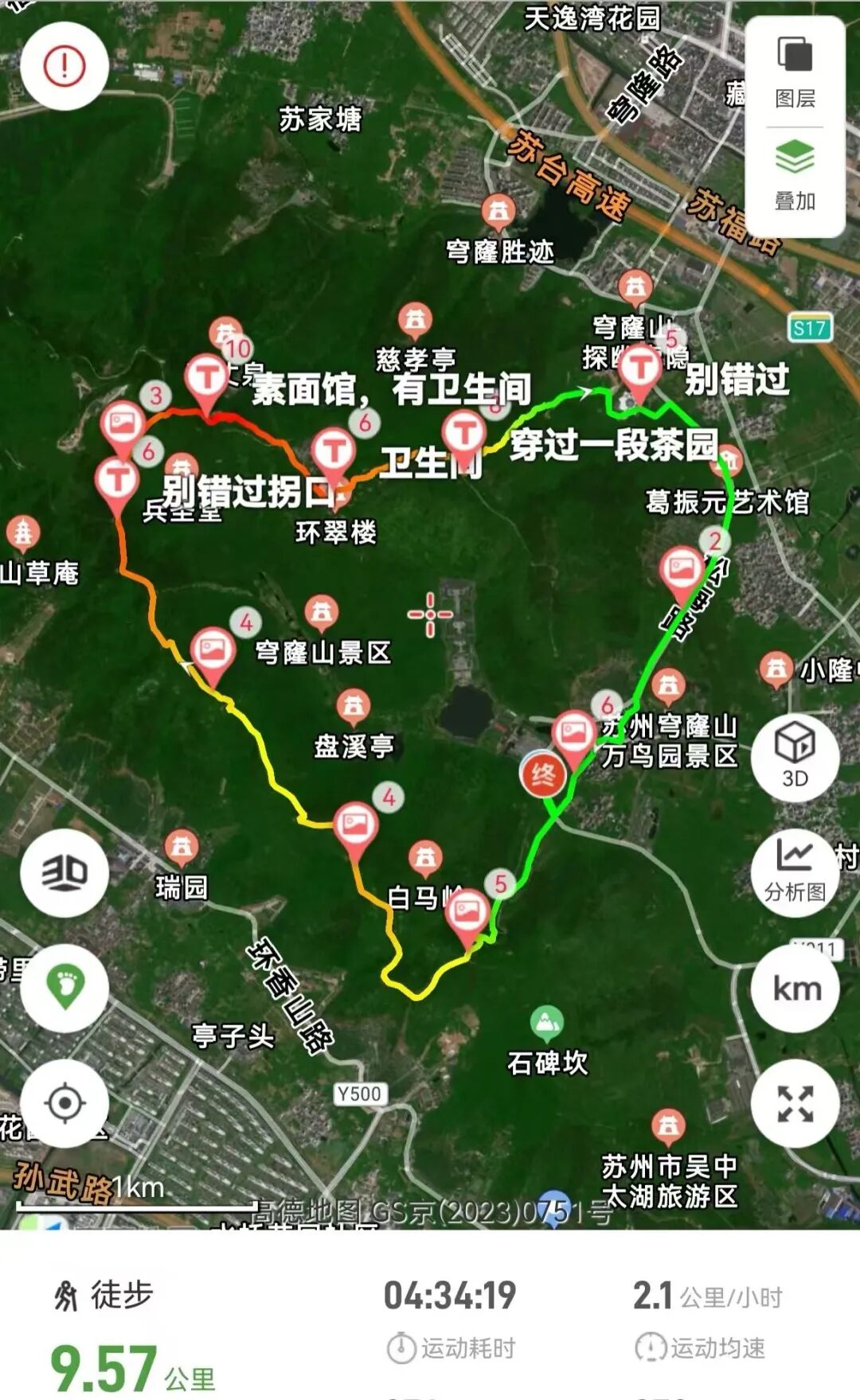 线路强度:★,全程9.5km,爬升380米,约4小时;