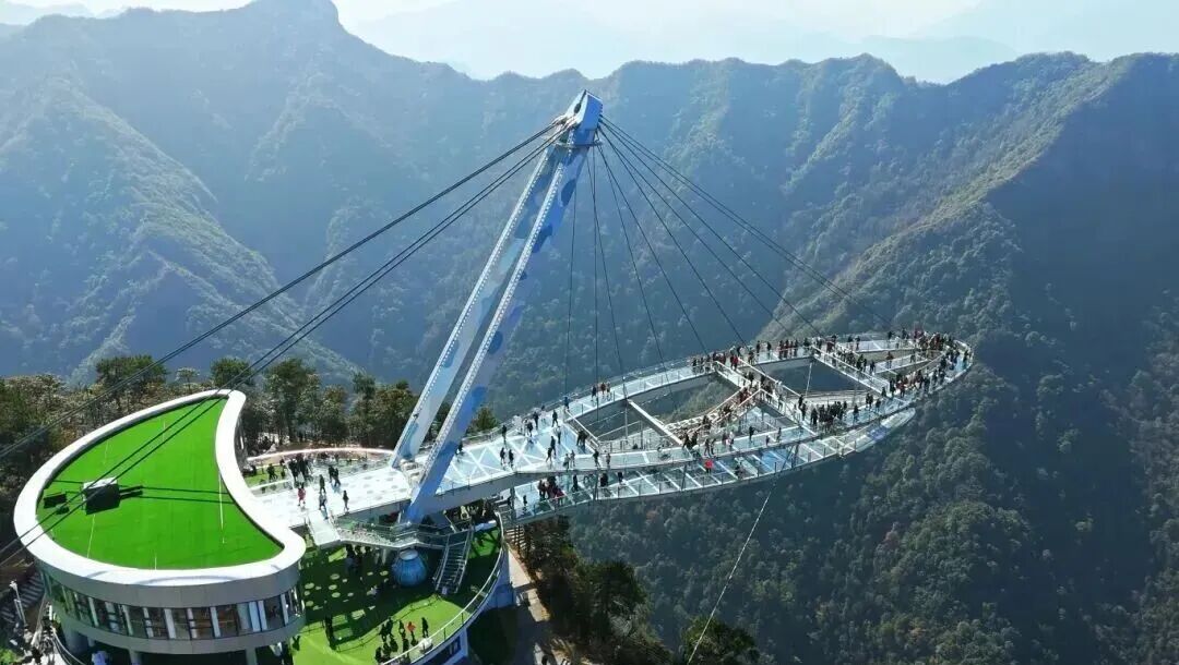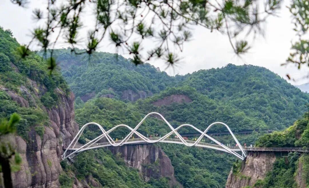 新晋“网红”景点——如意桥,宛如一柄空中的玉如意,架空幽深云端,横跨东西峡谷,让人不忍低瞰,每走一步都动魄惊心、如履薄冰,能让旅客感受到别样的刺激。