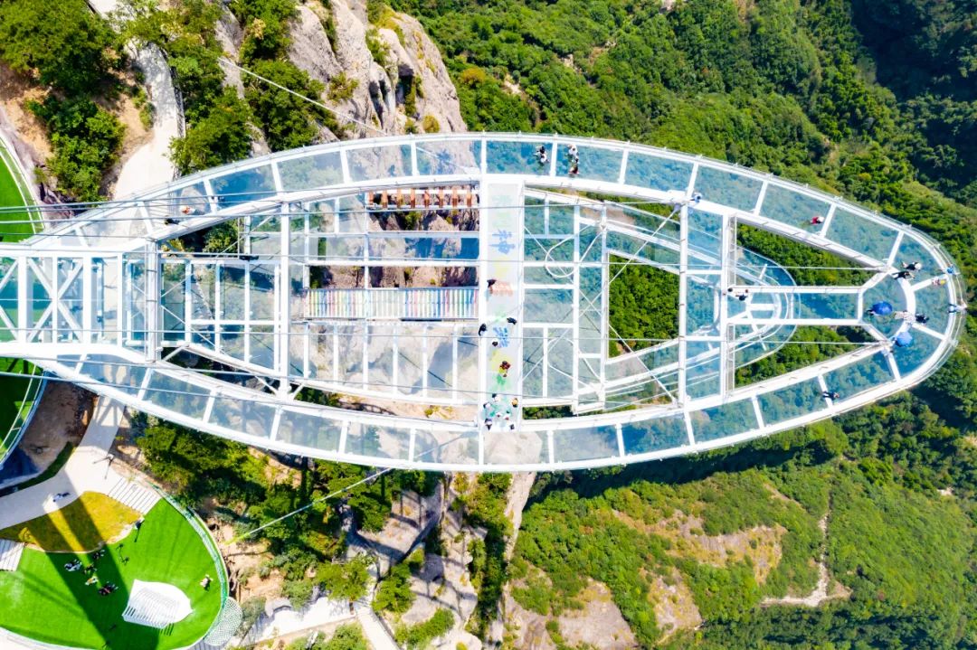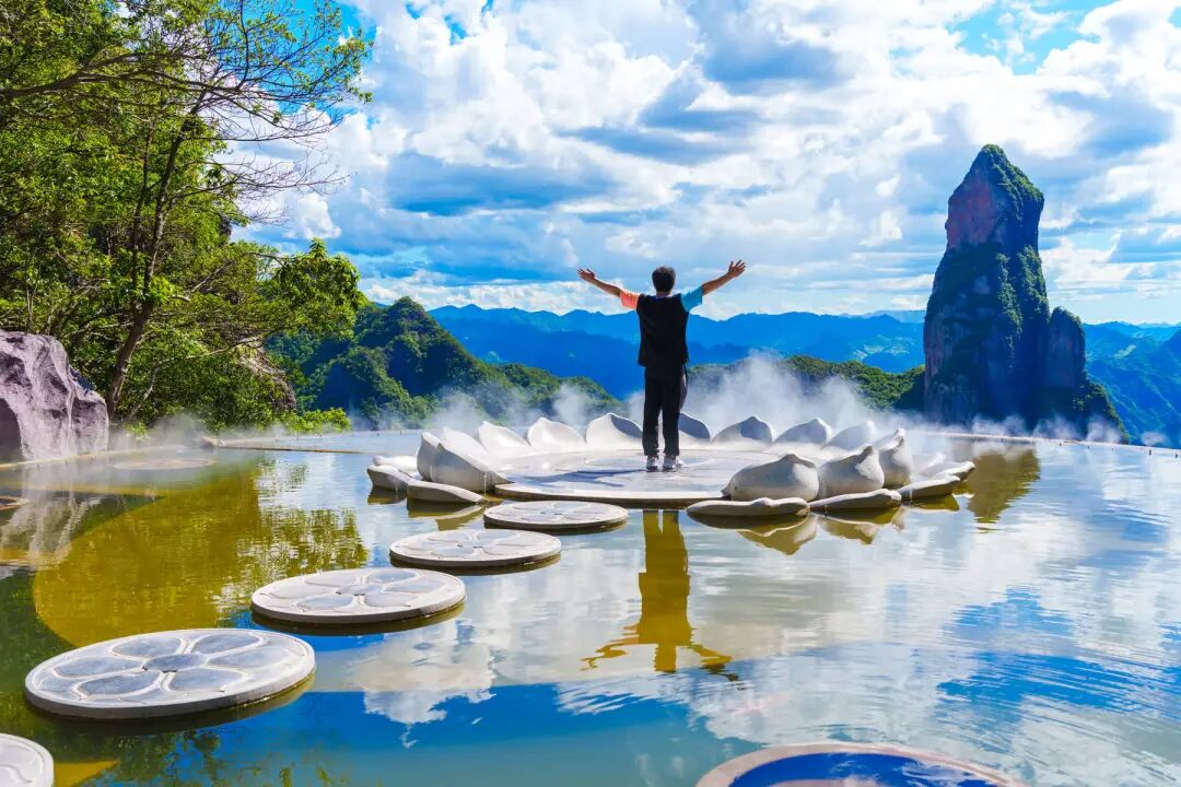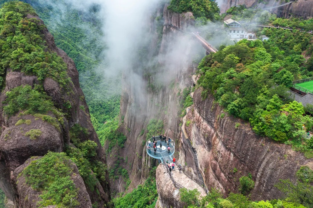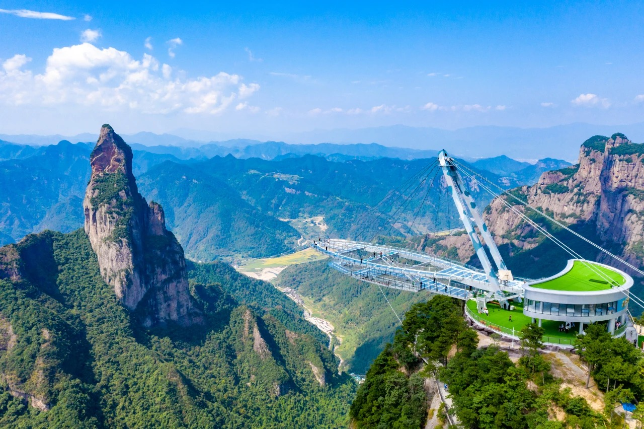 要是追求极致阔达,则必须登上南天顶,拥有全无死角的远眺盛景,让你体验如同云端般的凌然视角,站在全透明的玻璃观景台,头顶是碧空如洗、脚下是绿林涛涛,让你“不敢高声语、恐惊天上人”!