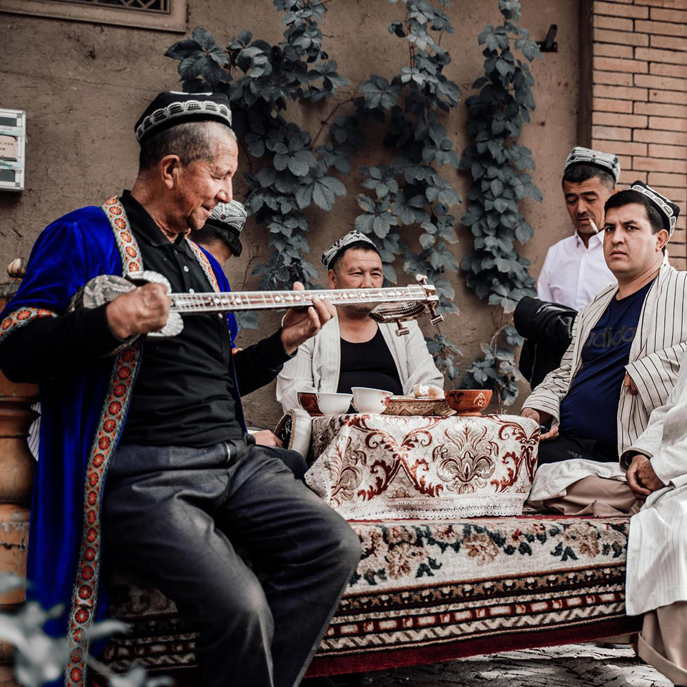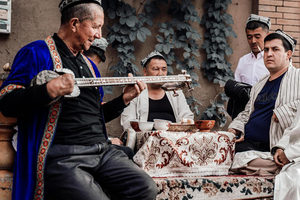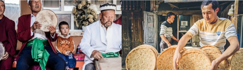 【百年老茶馆】:对于住在艾提尕尔清真寺周边的维吾尔族老人来说,去老茶馆喝茶,是每天雷打不动的事。冬天围着火炉,夏天在室外的阴凉地儿铺地毯,一元五角钱就能享用一壶茶,一个圆馕,还能与老朋友聊聊天。