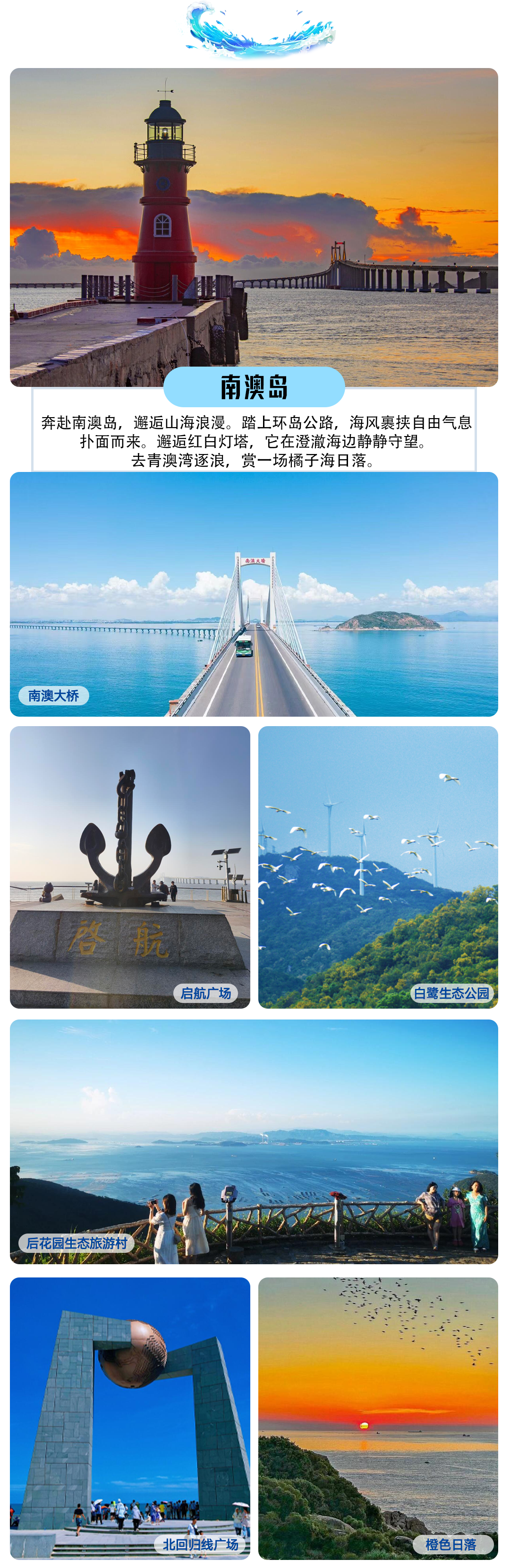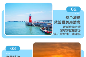 然后车赴广东最美的海岛——【南澳岛】。车辆行驶在汕头东海岸大道上,眺望东海岸大道毗邻的【西太平洋】一望无际的海域,这是央视直播的中国热点景观大道!后入住酒店!