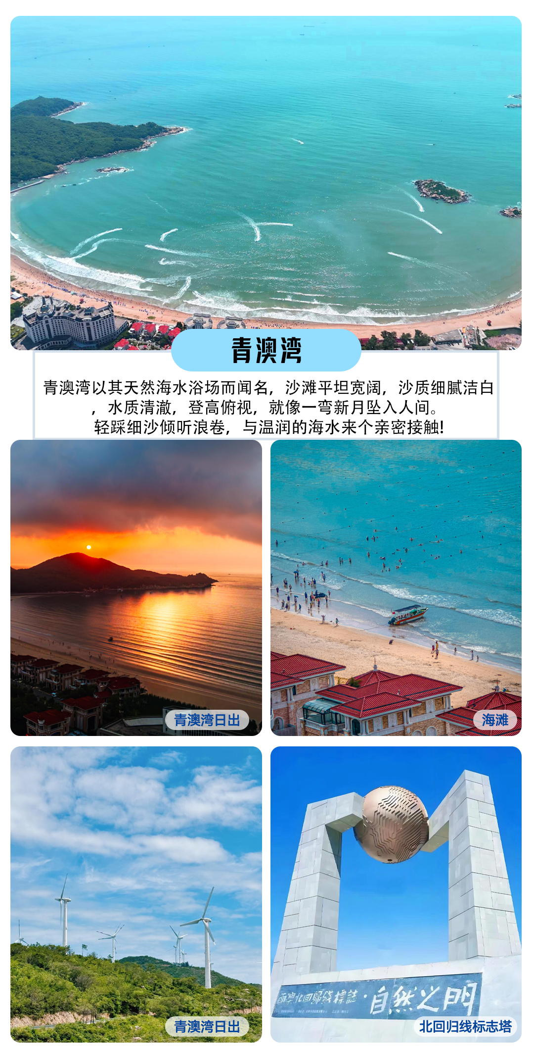 D3 南澳岛-启航广场-后花园生态旅游村-北回归线标志塔-青澳湾沙 餐:早/*/* 住:南澳岛