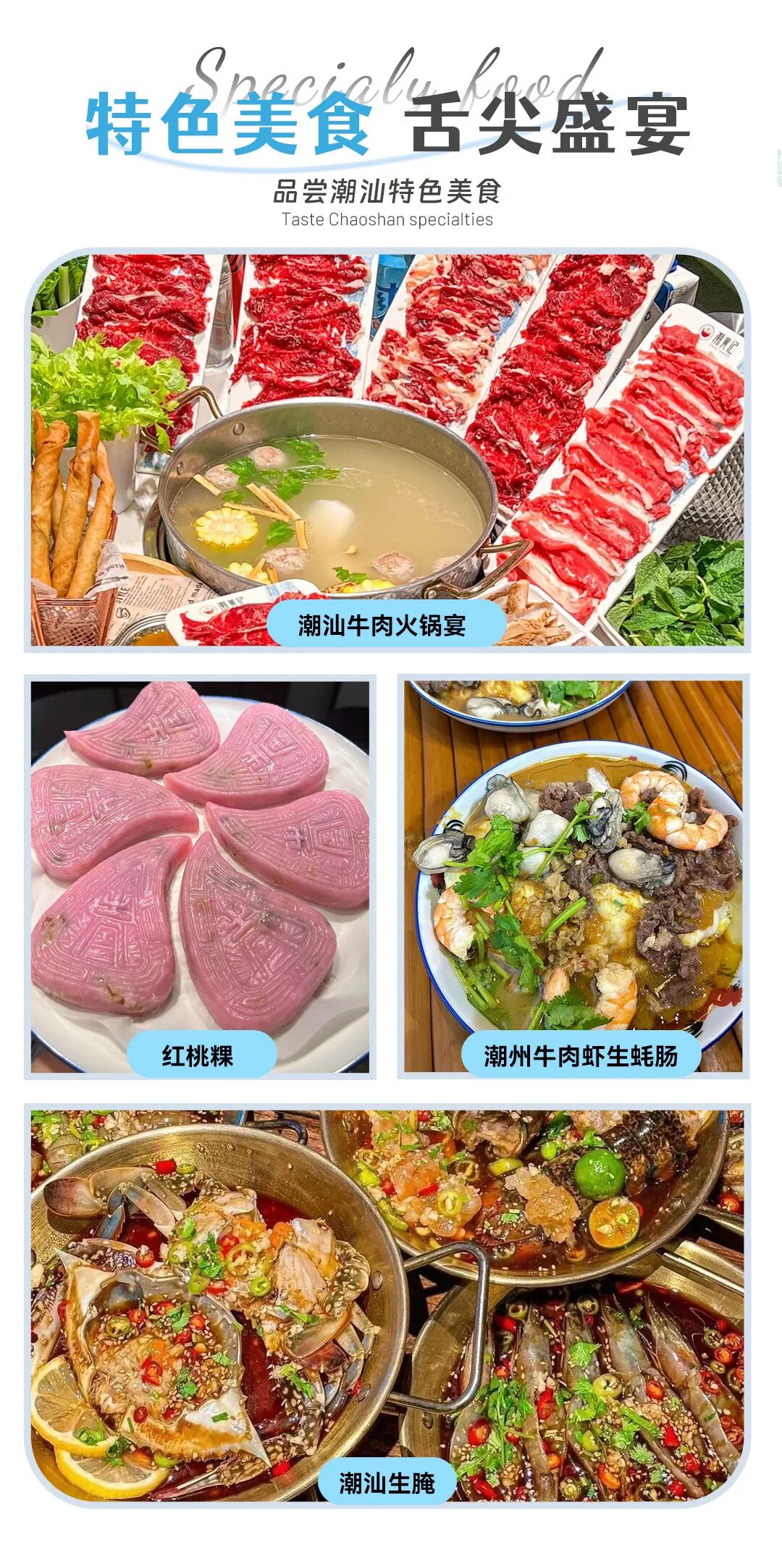 午餐:舌尖上的美食——【潮汕牛肉火锅宴】(任吃宴;请不要浪费)(温馨提示:如以上套餐菜品全部吃完,不饱的情况下可以再加菜(以上菜品),保证大家吃好吃饱,切勿浪费食物,浪费按50元/斤收费,拒绝自带酒水。)一盘盘刚刚切好的新鲜牛肉,筷子一撩滑进漏勺,翻掂几下,迅速捞起在沙茶酱中一滚,入口便是鲜甜到忍不住闭上眼睛的满足感。毫不夸张地说,只要吃过潮汕牛肉火锅的人,即使离开万里,做梦都会惦记这锅红艳艳的牛肉。