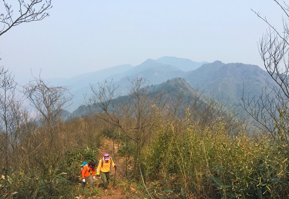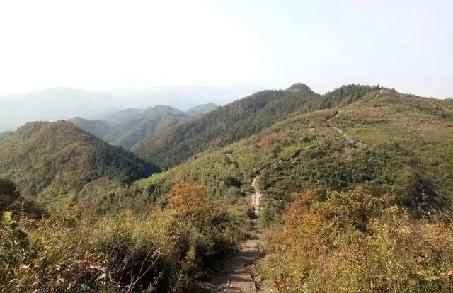 连续翻过三座大山,坐在山顶补水休息,一览纵山小。