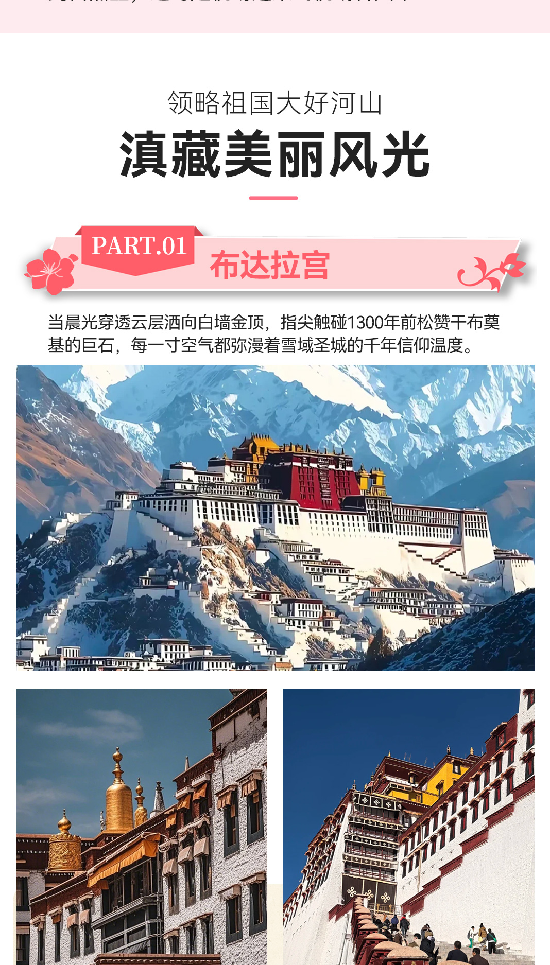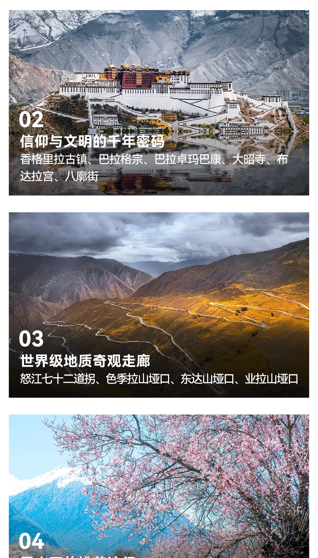 2、门票:白水台门票、巴拉格宗门票+景交,盐井盐田门票、雅鲁藏布江大峡谷(含索松村景交)、来古冰川门票+景交,巴松措(含景交)、布达拉宫门票,桃花沟门票以及包车;