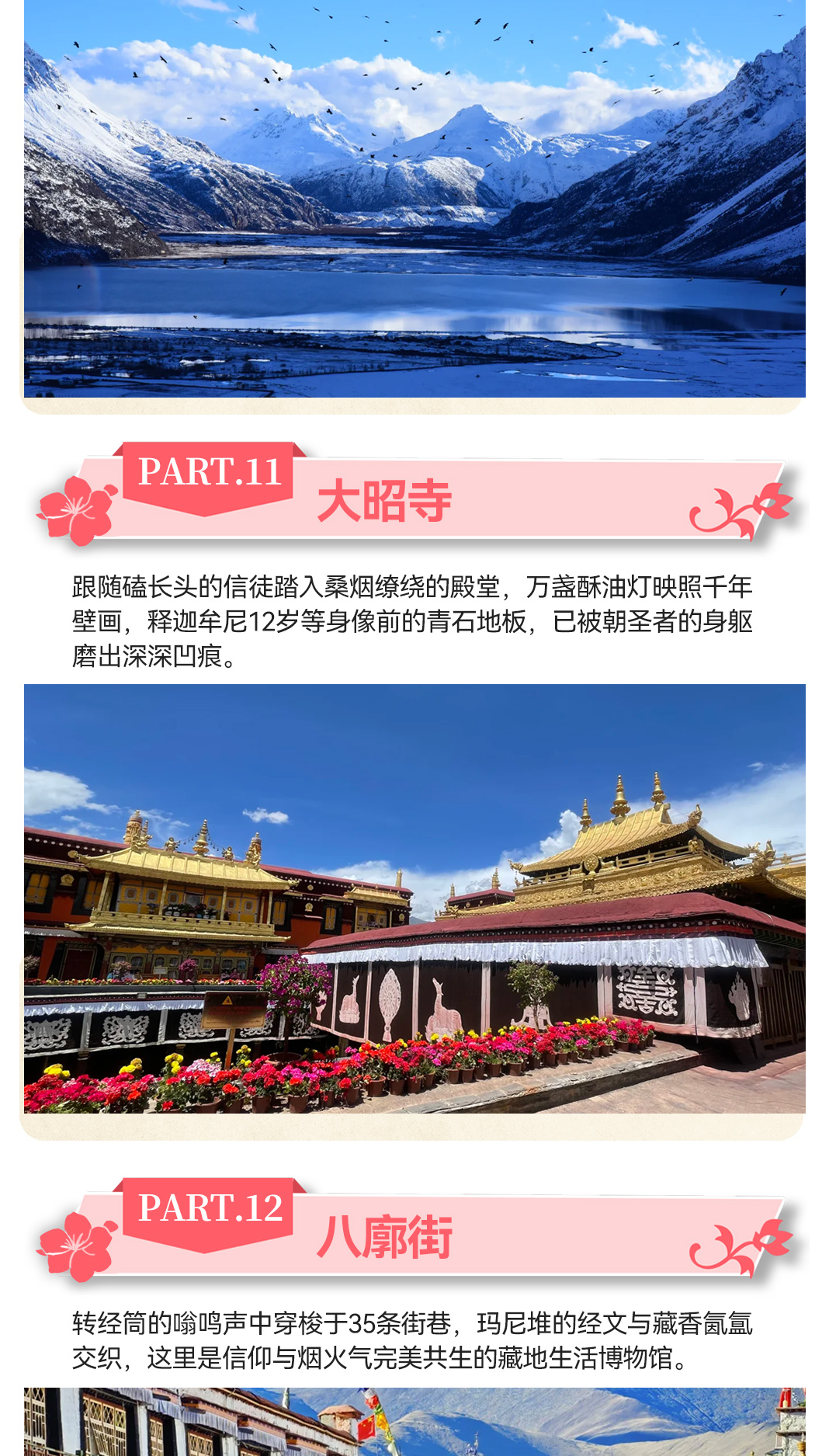 今天全天拉萨,根据预约好的门票时间段,在讲解的带领下,游玩布达拉宫,大昭寺,结束后,可以去八廓街喝喝奶茶晒晒阳台,在八廓街藏拍,给本次活动留下美好的画面。