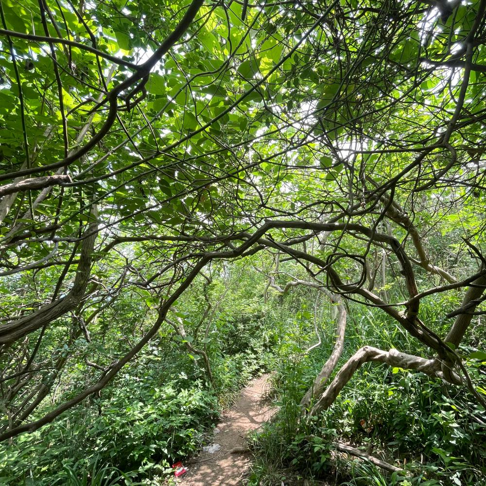 10:30我们到达徒步起点。简单热身后,沿台阶而上,几分钟后钻进一片荆棘林,自此,开始进入今日虐途之旅。