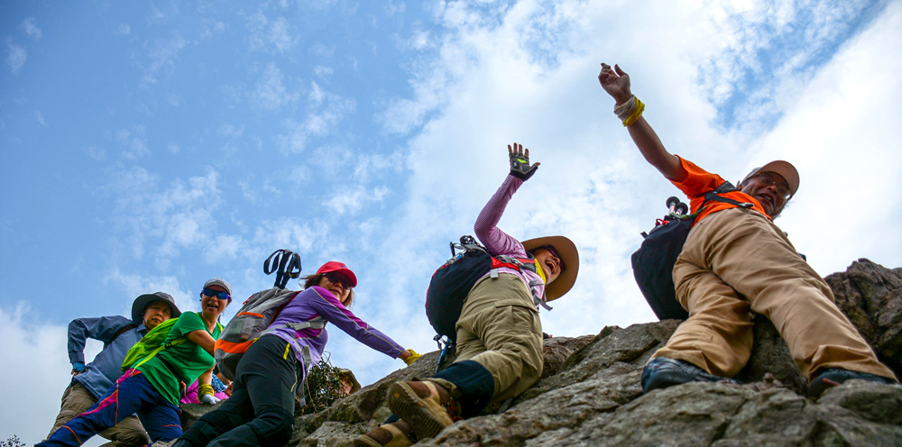 【手脚并用】:区别于一般徒步线路,沿途多出需手脚并用攀爬才可通过,协调性与核心力量的双重锻炼!