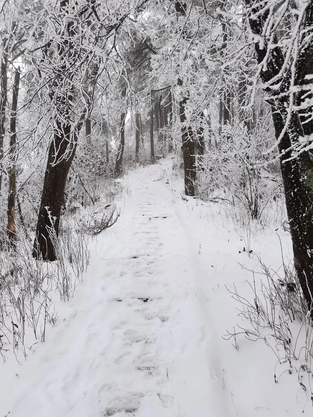 穿越白雪皑皑的雪原小道,一路向上攀登,到达百丈岭营地打卡!