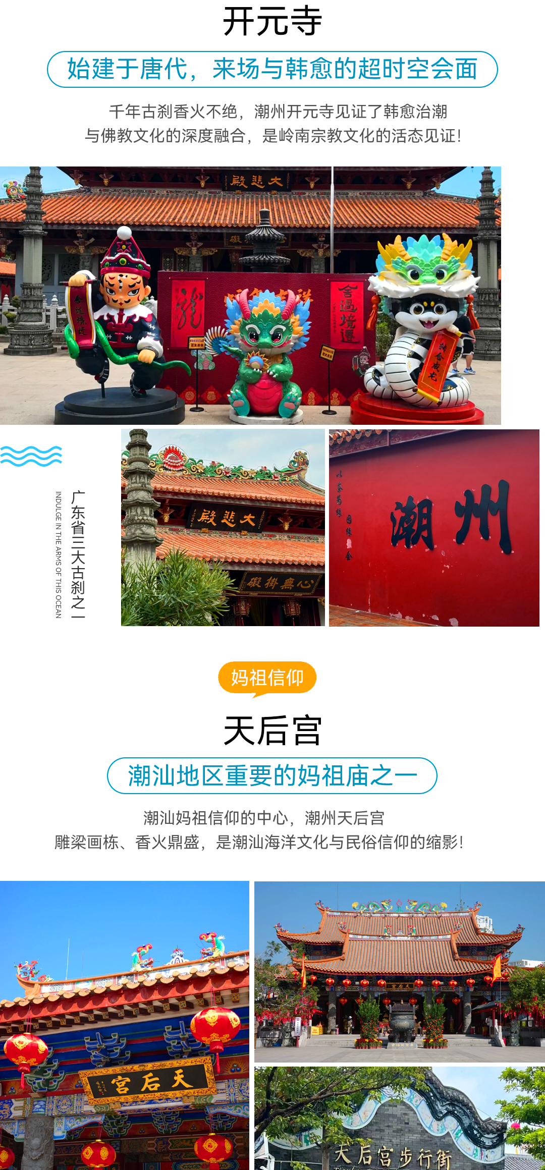 —前往【天后宫】天后宫位于惠州巽寮湾旅游度假区内,始建于清朝末期,距今已有400多年历史,经过后期复建,如今这幢两层高的天后宫恢弘大气,香火不绝。. 妈祖是沿海地带人民十分景仰的民间神祗,传说每逢有人海中遇险,妈祖便能显身救人。. 天后宫并不大,来此的游客多为祈福或瞻仰这座古寺,领略惠州人民的妈祖文化。. 天后宫所在的历史文化商业街拥有众多特色商品,旁边还有着一条美食街,都是值得一逛的去处。