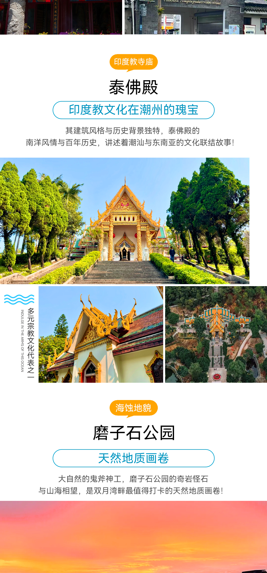 —游览【泰佛殿】位于韩江大桥东侧,即东山路慧如公园对面山麓,泰佛殿门额书“开元寺泰佛殿”。是我国汉地佛教第一座独具热带风情,规模宏广、建筑优美的园林泰国式佛殿。它既是中泰两国文化的折射,又是泰国潮人支持家乡建设的见证